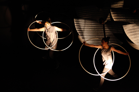 The staging of "After 100 Springs" in 2014, in collaboration with the youth of Beirut, was an attempt to explore the situation, while searching for the spirit of hope. In our performance, the symbols of the four elements (fire, water, earth, and air), the characterization of three generations, and the circular forms were used to portray unity as it is achieved through the responsibility of sharing.
