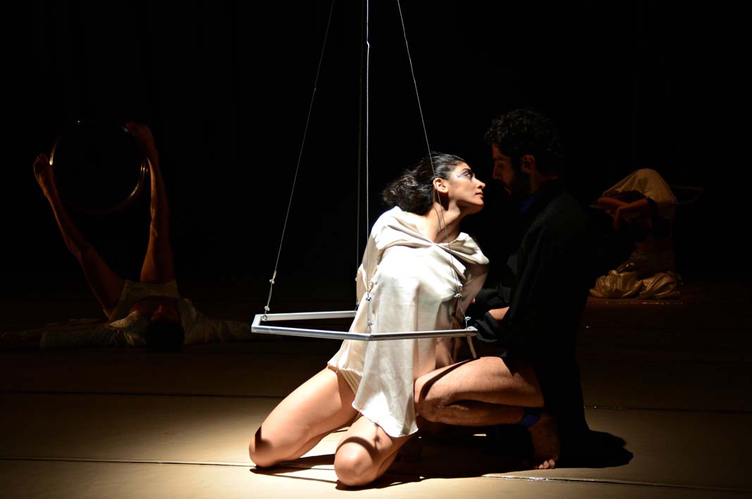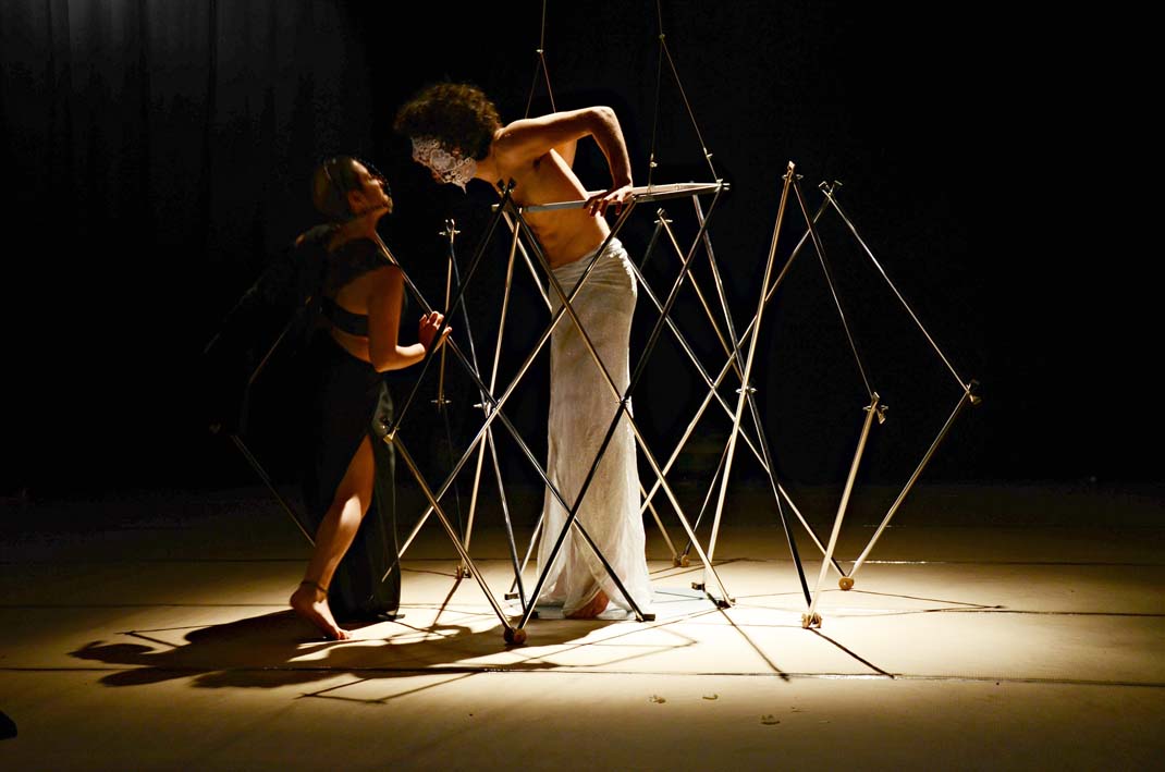 Both plays are performed simultaneously on the same stage by an ensemble of both amateur and professional dancers. The audience is asked to separate from their friends/spouses and enter on either side, observing within the same room two plots from different angles.